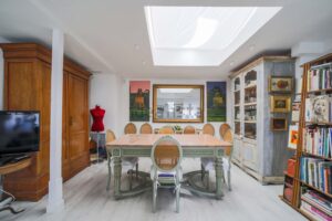 El inmueble está distribuido de manera excepcional, con un enorme salón comedor que se convierte en el corazón del hogar, ideal para reuniones familiares o con amigos. La cocina independiente es perfecta para los amantes de la gastronomía. Ofrece dos habitaciones principales, dos baños completos con ventana, y una habitación adicional que puede ser utilizada como oficina para teletrabajo. Además, dispone de una habitación de lavado y numerosos armarios empotrados para maximizar el espacio. Hay un dormitorio del que se podrían sacar dos.