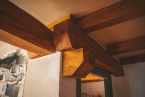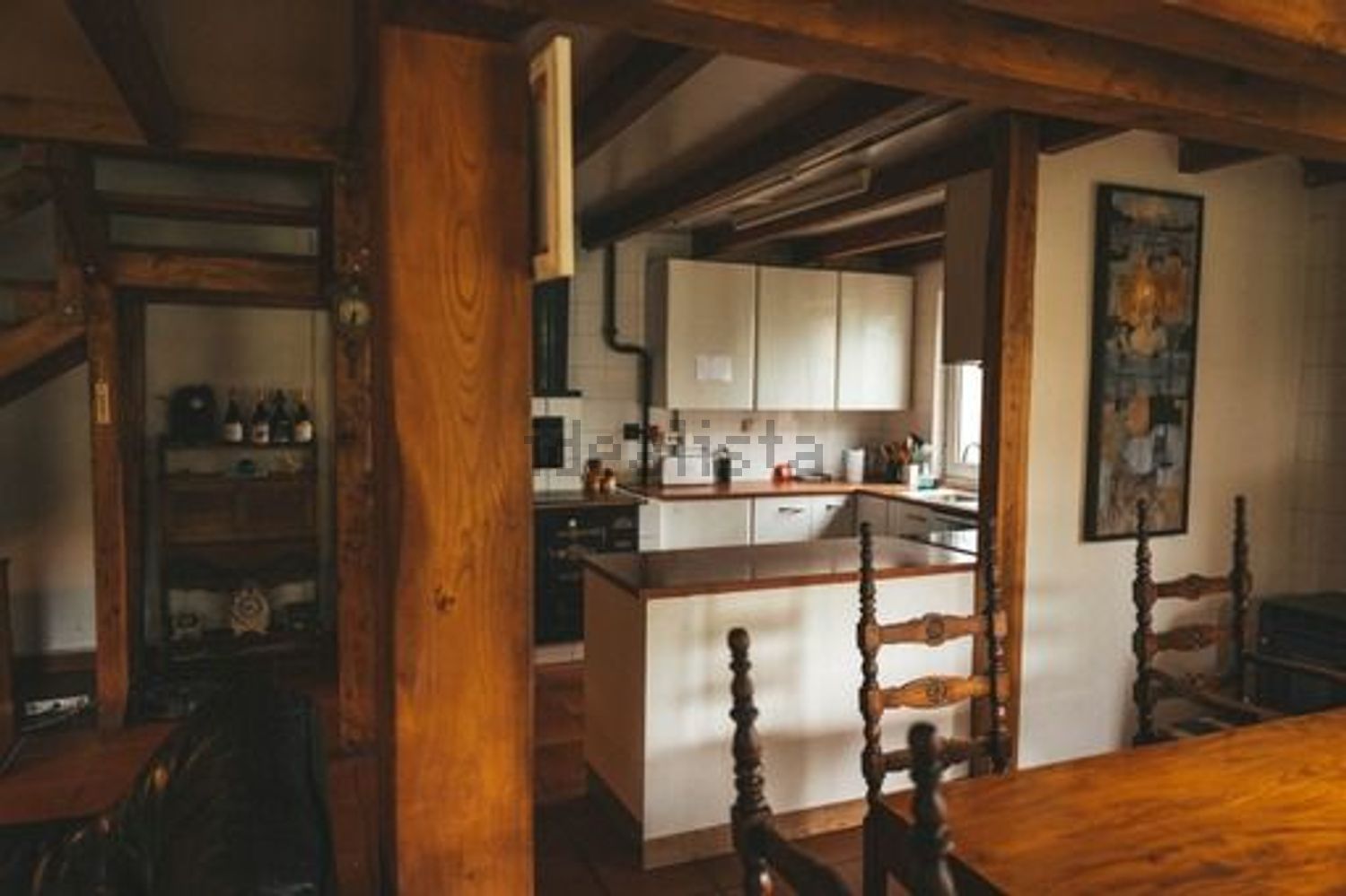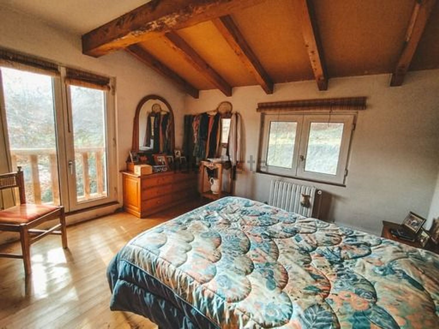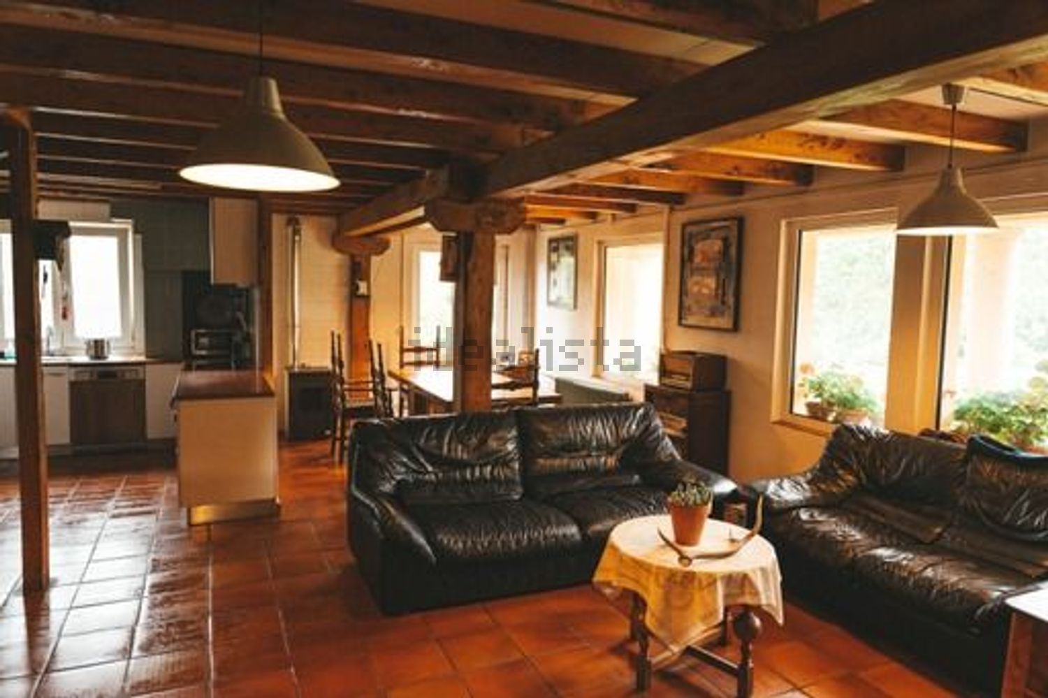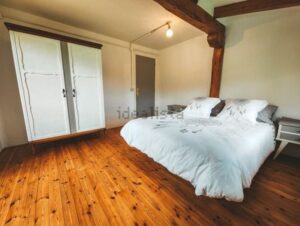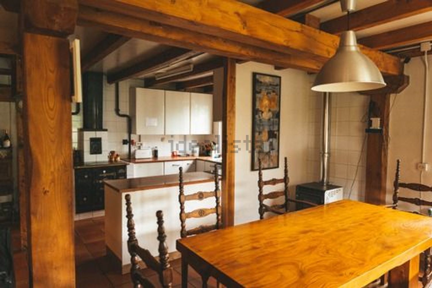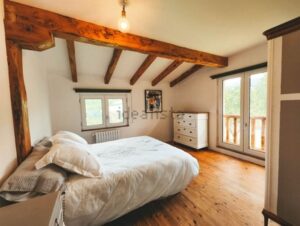 La casa de 200 metros tiene dos plantas y esta construida en estructura de madera de olmo. Buen aislamiento térmico de paredes y techos. Certificado Energético A.