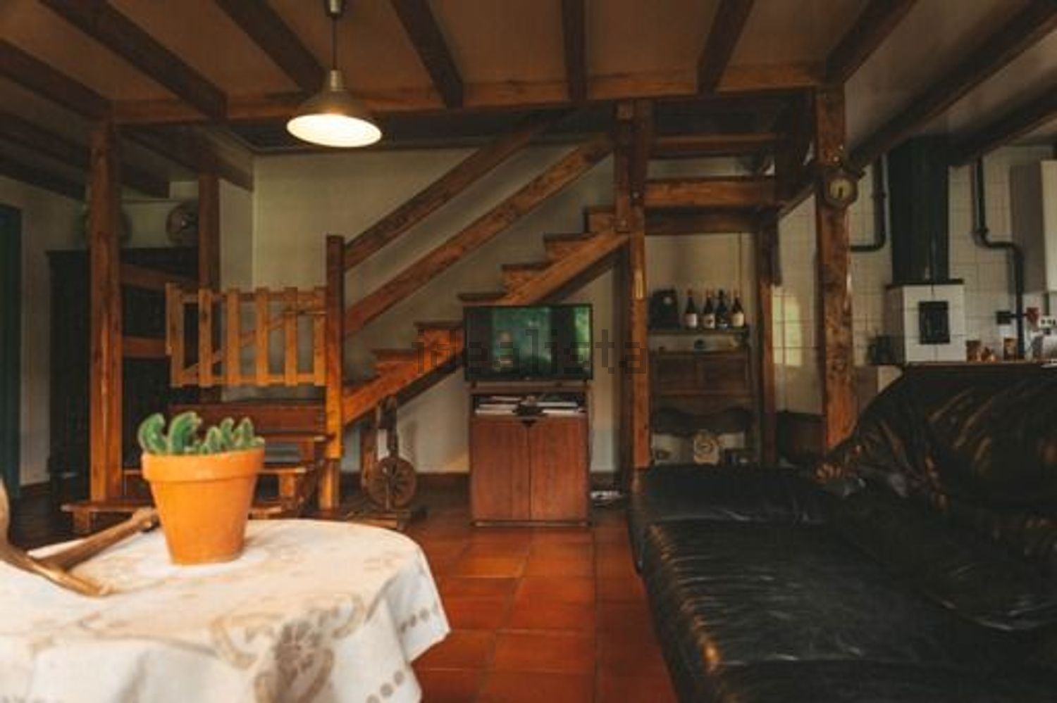 Calefacción mediante cocina económica de leña, apta para cocinar, la cual mediante una bomba calienta radiadores en todas las estancias, habitaciones y cuartos de baño. La instalación es compatible con gas propano. Tiene estufa de pellets en la planta bajaLa casa se distribuye de la siguiente manera: