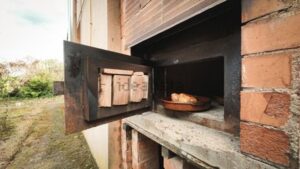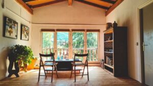 Tiene un porche de 20 metros con orientación sur este y un horno de techo de bobeda para cocinar cochinillos, cabritos, pan, en el jardinActualmente se alquila con Airbnb y los inquilinos reportan un agradecimiento a la anfitriona por la calidad del servicio, bienestar de los inquilinos.