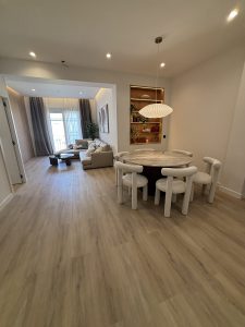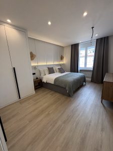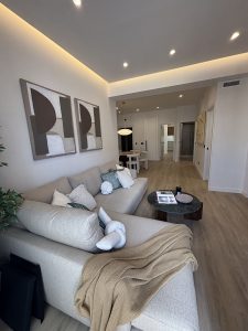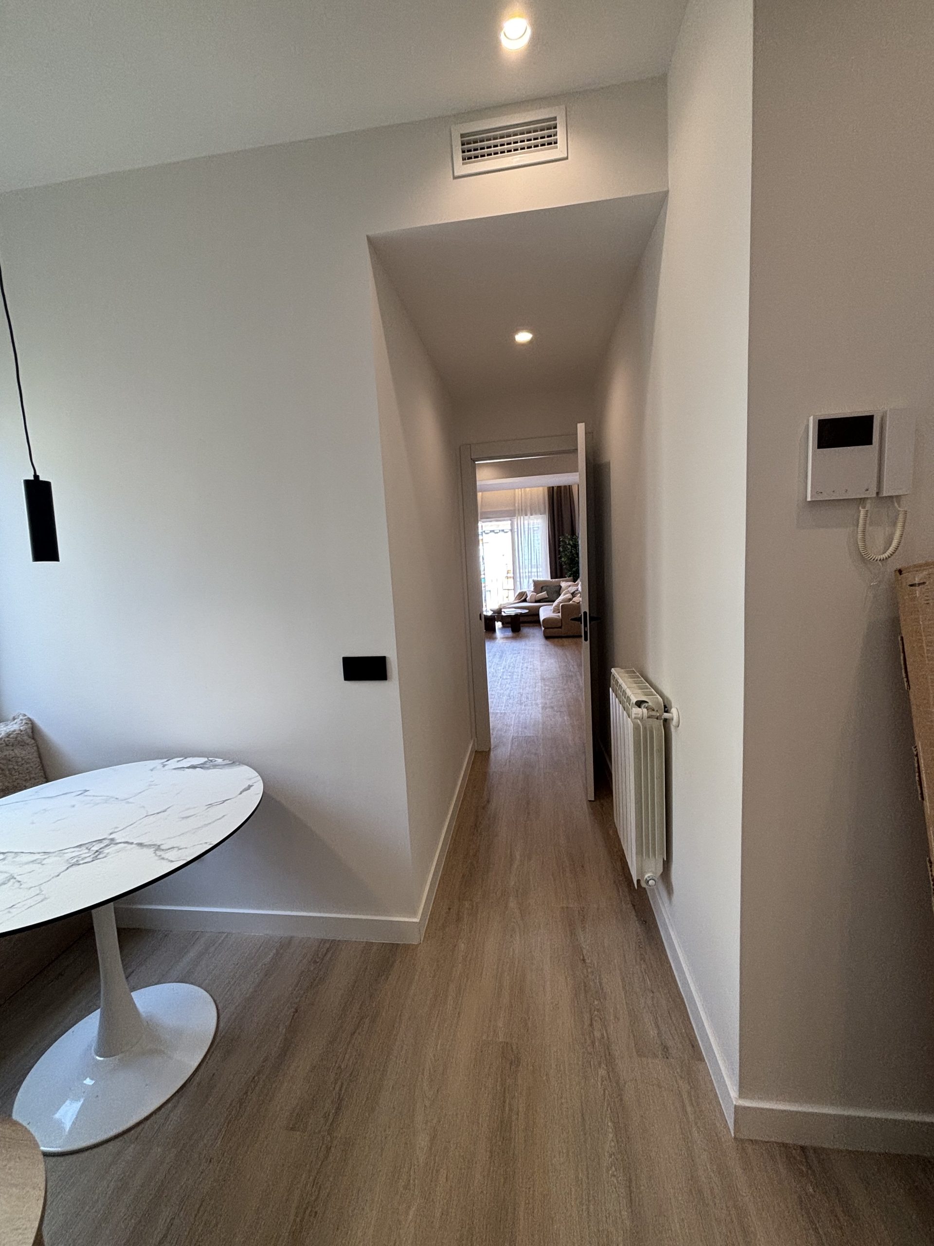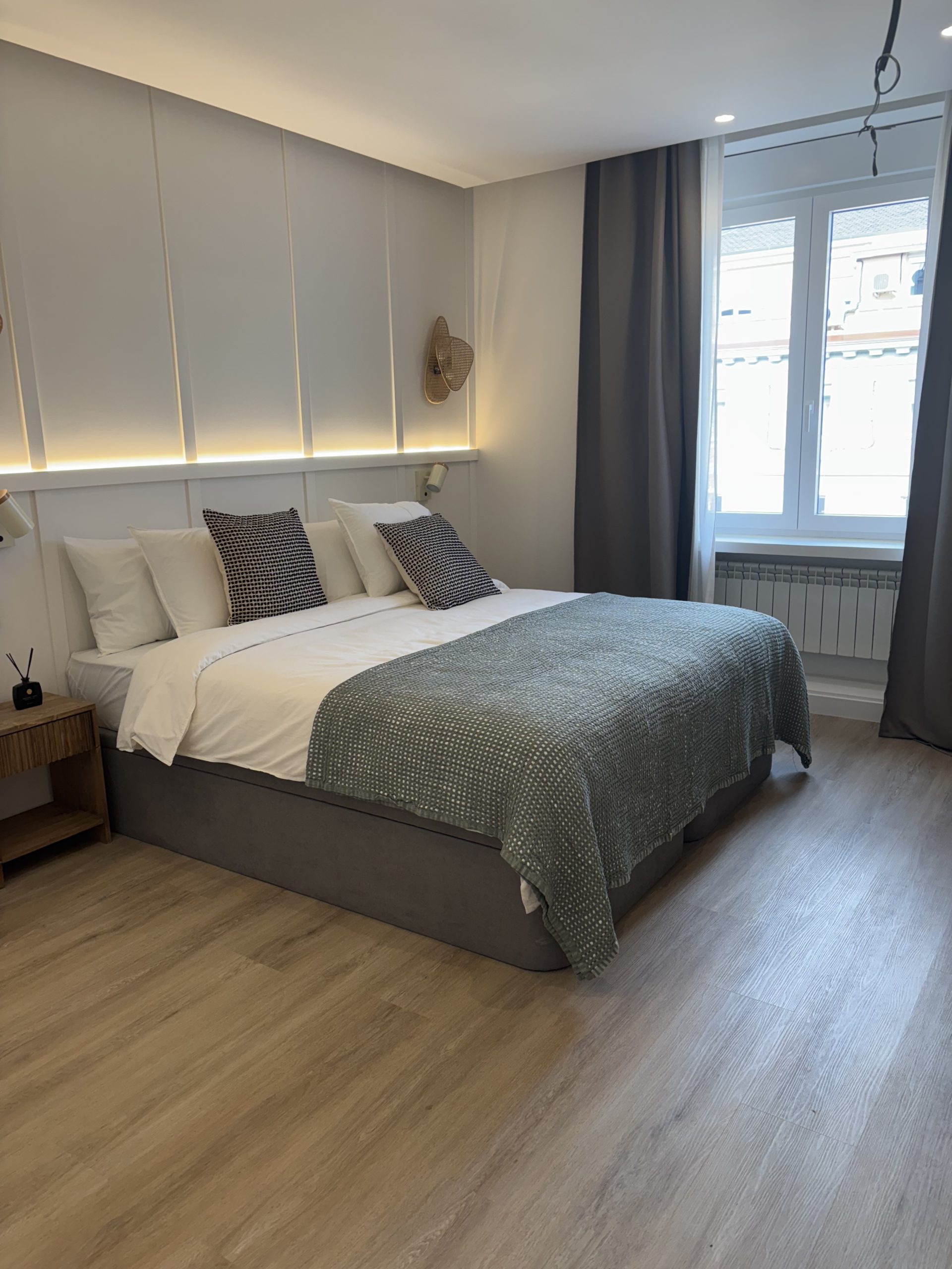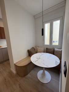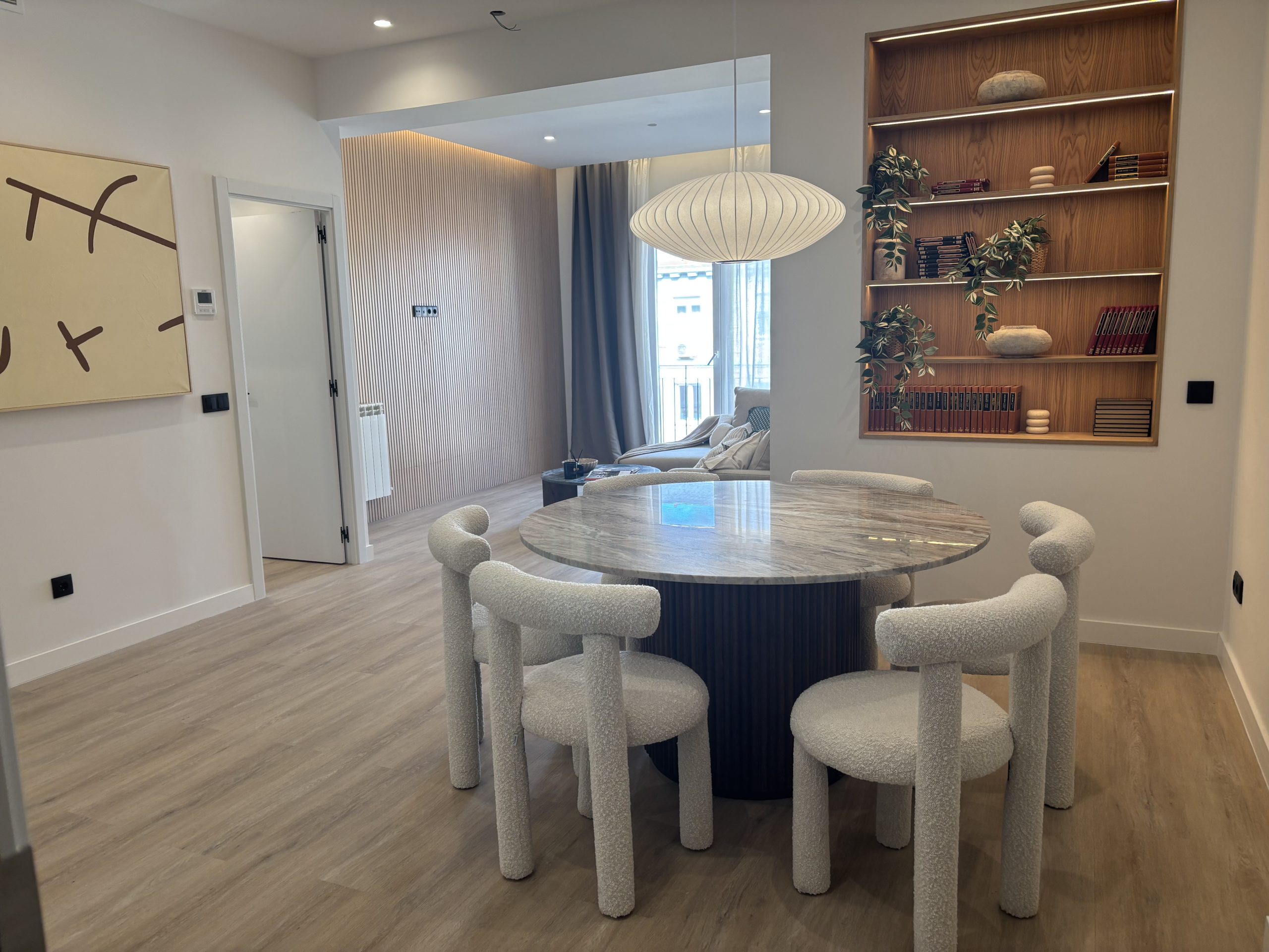 La vivienda se distingue por su magnífica entrada de luz natural y por la sensación de calidez y bienestar que transmiten sus estancias principales. El salón-comedor, auténtico corazón de la casa, ofrece un ambiente sereno y elegante donde la luz cobra especial protagonismo. Desde aquí se accede a una terraza que prolonga el espacio hacia el exterior, creando un agradable desahogo con vistas a la arboleda del Retiro.