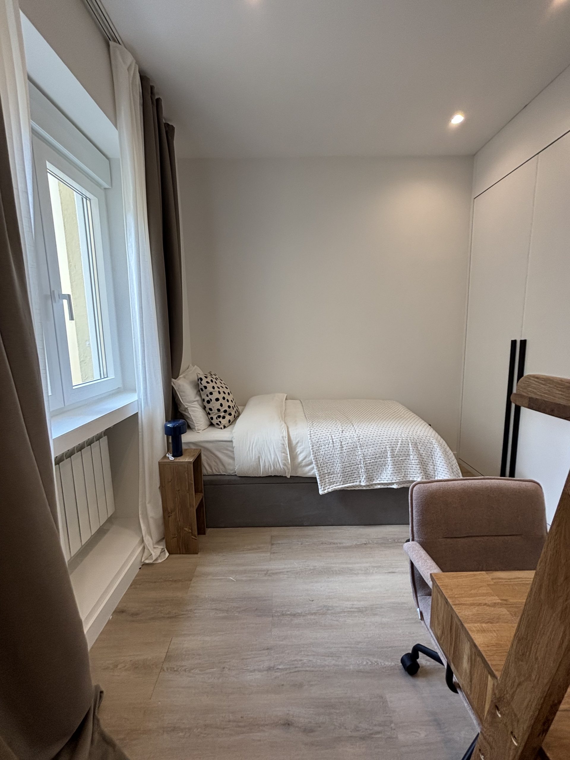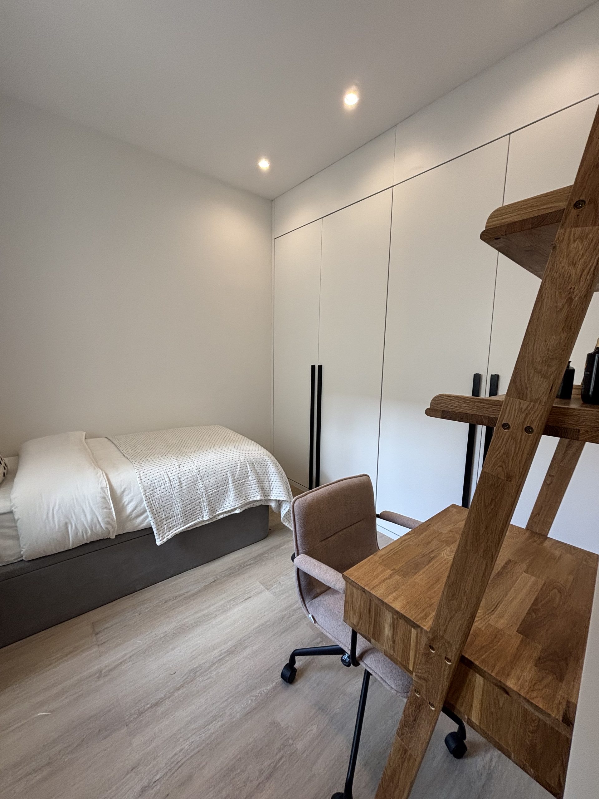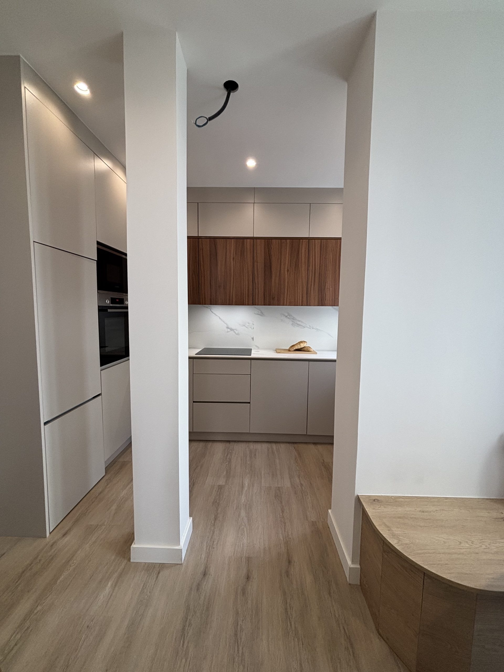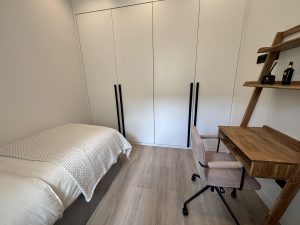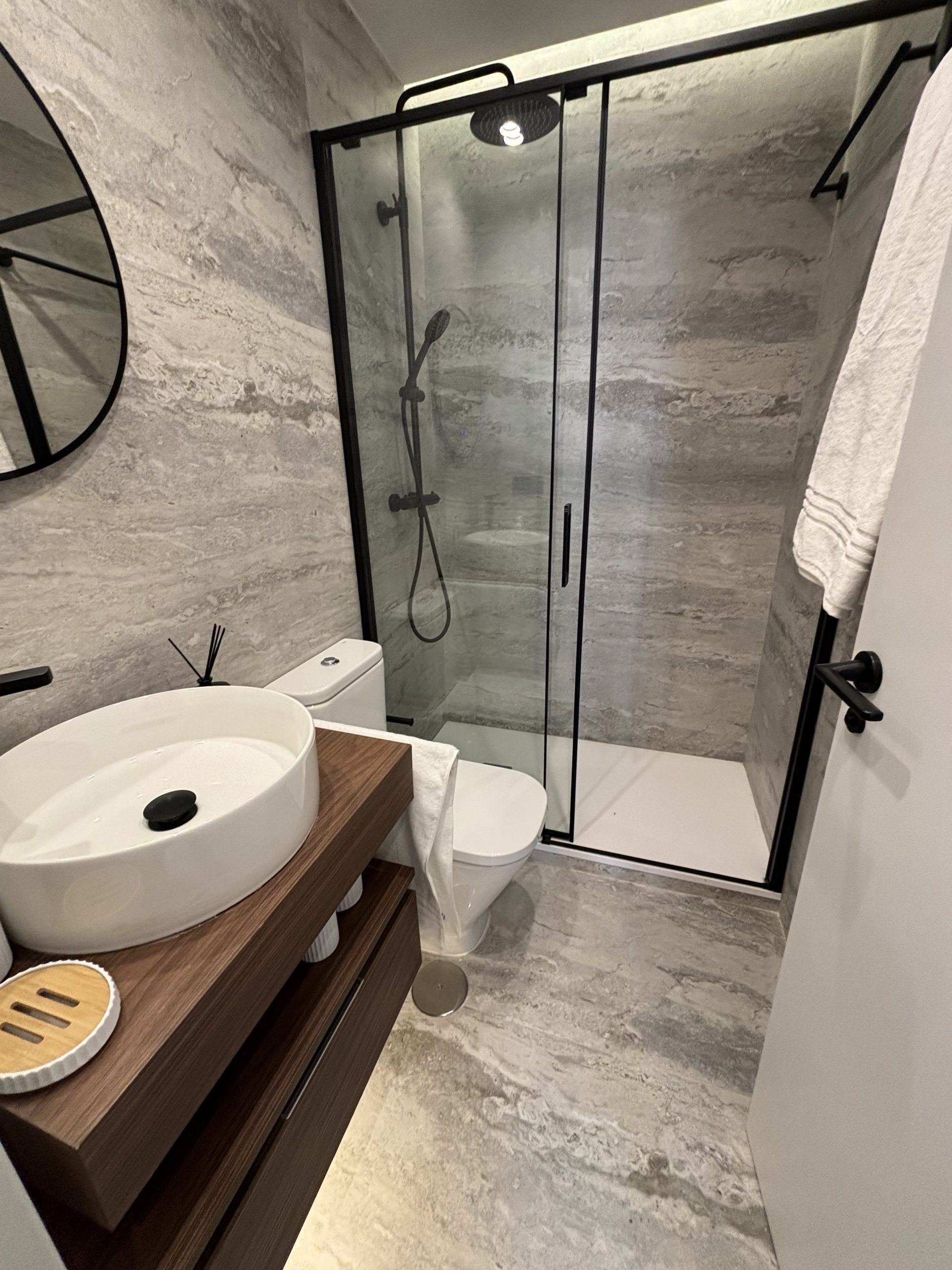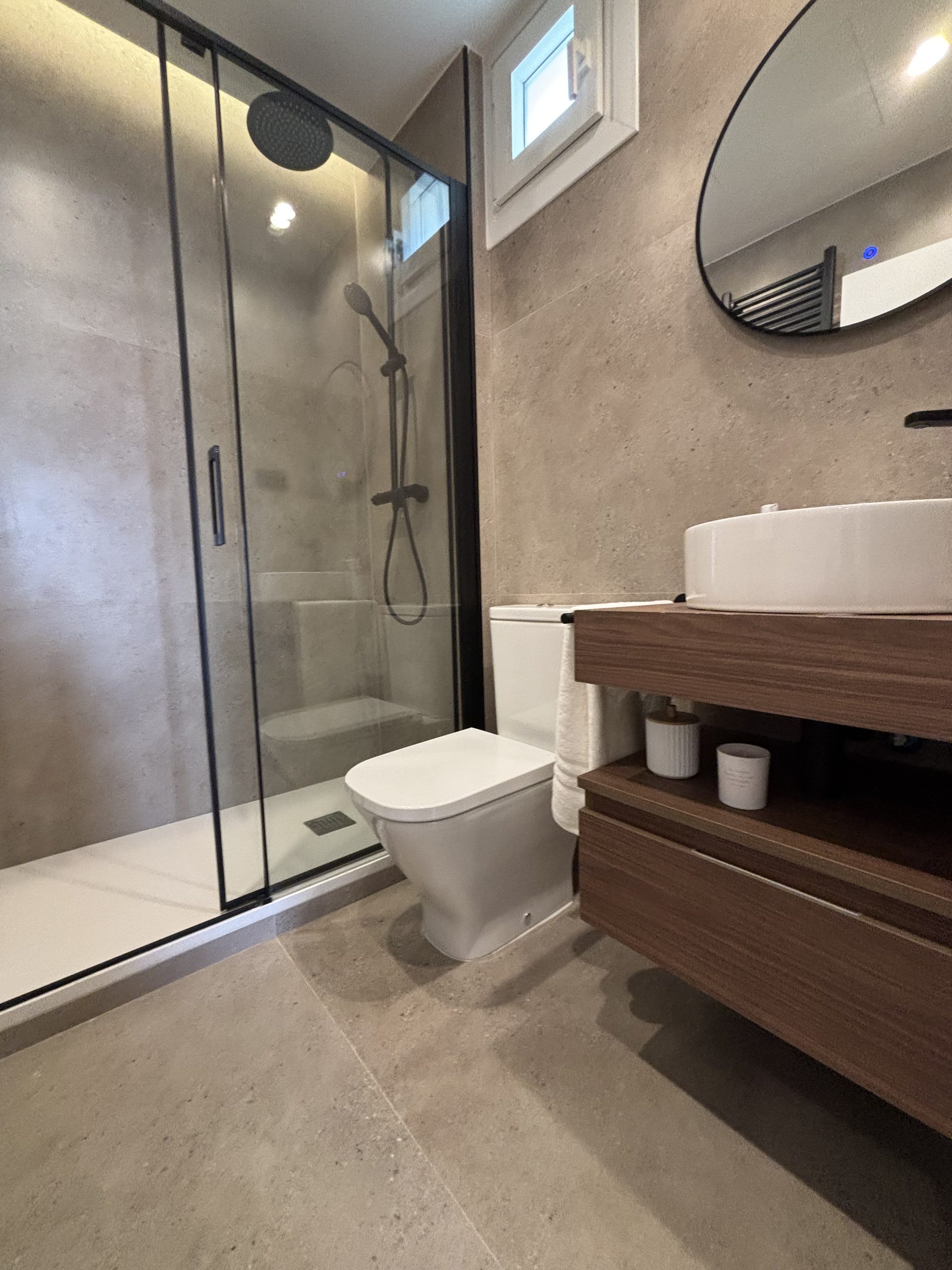 La zona de descanso cuenta con dos dormitorios y dos baños completos. El dormitorio principal, amplio y luminoso, dispone de un baño en suite de diseño contemporáneo. El segundo dormitorio, también con luz natural, es ideal como habitación infantil, despacho o dormitorio de invitados. Un segundo baño completo da servicio a la vivienda y funciona además como baño de cortesía.